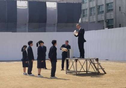 令和6年度の修了式を運動場で行いました。各学年の代表に修了証が授与されました。