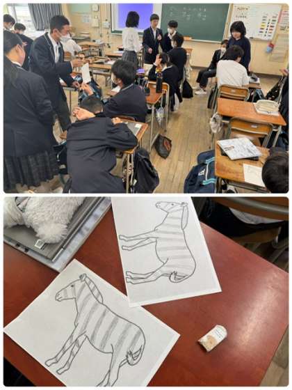 理科ーシマウマの模様を描いています。