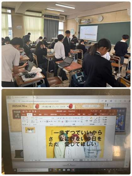 国語ー自分の好きな歌詞を紹介するための準備をしています。