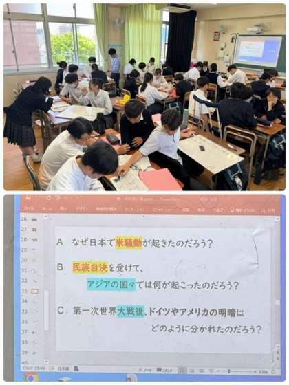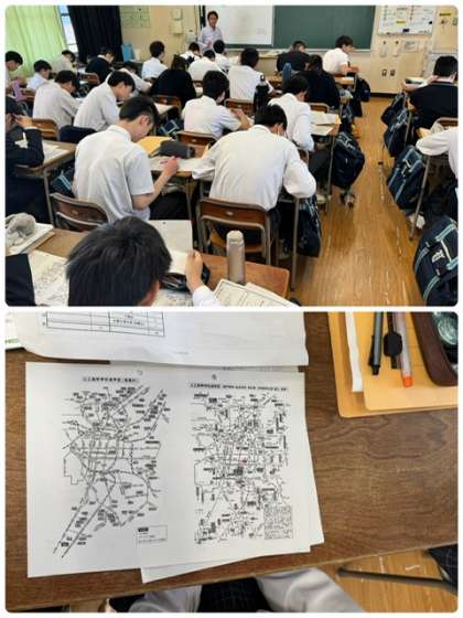 進路学習ー私立高校、公立高校の場所を確認しています。