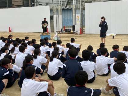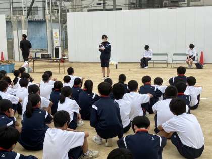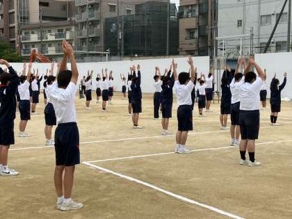 開会のことばがあり、準備運動として、ラジオ体操を行っています。