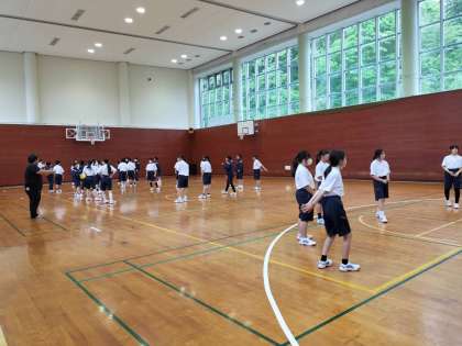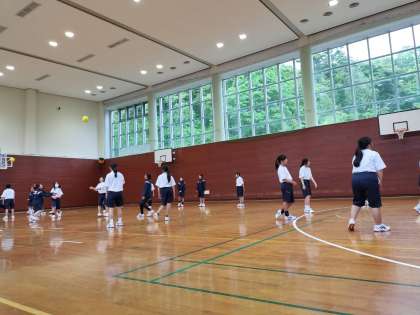 1組は、雨が強くなったので、アスレチックの代わりに体育館でレクを行っています。広い体育館に入るなり大はしゃぎでした。