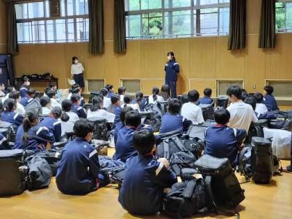 帰校後、格技室にて生徒の司会による解散式を行いました。予定より少し早く解散しています。