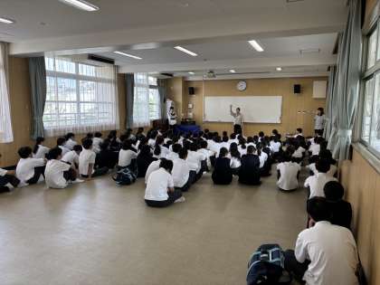 男子バレー部の活気のある応援を取り上げ、大きくハキハキとした声で相手に伝えること、声が小さくてもジェスチャーで伝えることも大切な「声」であることをお話しました。