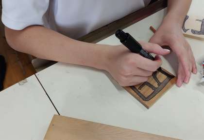 生徒の皆さんは、真剣に木彫に取り組んでいます。完成が楽しみです。