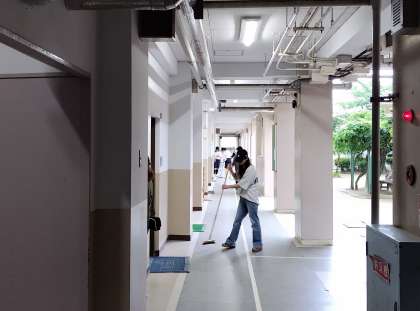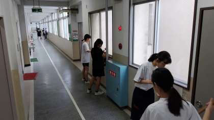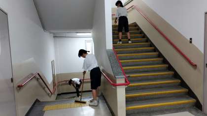開始直前の降雨のため、急遽、校内清掃に切り替えて実施しています。