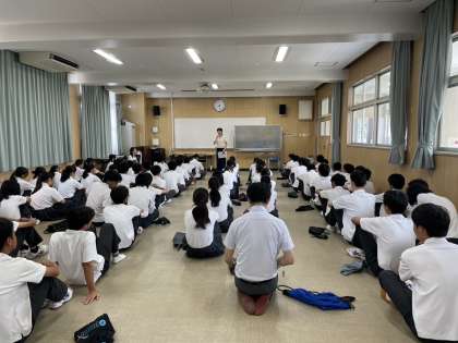 3年生の学年集会では、1学期のふりかえりをしました。
