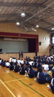 学校に到着しました。体育館にて解散式をして3時15分終了です。明日は、9時登校(予鈴8時55分)です。疲れをしっかり取って笑顔で登校しましょう。