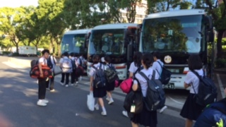 16時33分のぞみ231号は新大阪駅に着きました。バス4台で学校に戻ります。2組のみんなが分乗して出発です。17時新大阪を出ました。学校着17時40分の予定です。