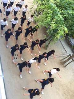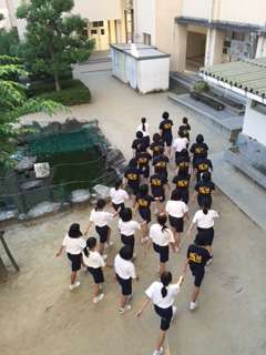 部活動でも行進練習をしています。掛け声とともに、見事な行進風景です。