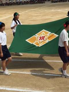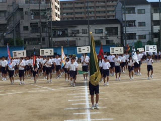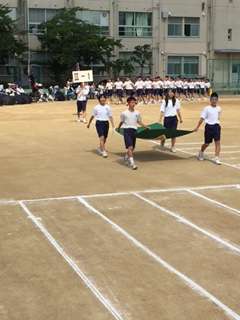 運動会が始まりました。入場行進です。今年のスローガンは「つなげ思いを 伝えろ意思を 未来へ残せ 思い出を」です。今日、一日精一杯競技します。
