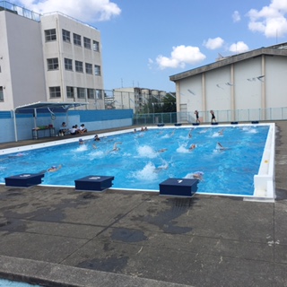 夏本番の陽気が続いています。プールはこの夏のため、色を鮮やかなブルーに塗り替え万全の準備で生徒が泳ぐのを待ってくれていました。生徒の歓声が響きわたっています。