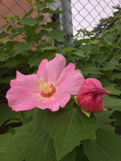昨年9月の終わりに咲いてこの日記に紹介した芙蓉の花です。遠く平安の頃から観賞され、人々に愛されてきたました。朝に咲き、夕方には萎んでしまう花です。学校の西側校舎裏にはピンクと白の芙蓉の花が次々咲いています。温暖化の影響でしょうか?