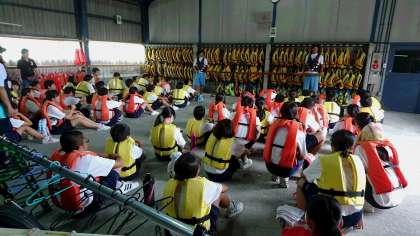 指導員の方からの説明を受け、いよいよカッター訓練が始まります。