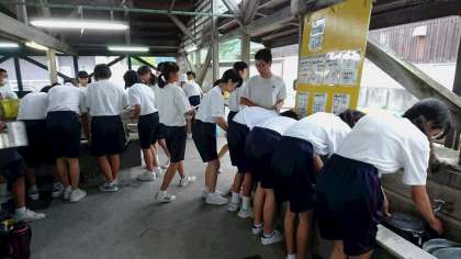 野外炊飯のかたずけにはいりました。みんなで協力して素早くかたずけられました。