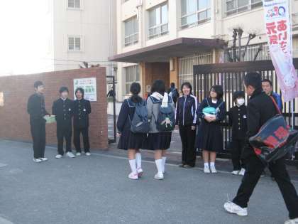 2月5日(水)より7日(金)まで、生徒会による「ペットボトルキャップ回収」を登校時に、校門前で行いました。集めたキャップは、鶴見区社会福祉協議会に持って行き、世界の子どもにワクチンを届ける運動に活用してもらいます。
