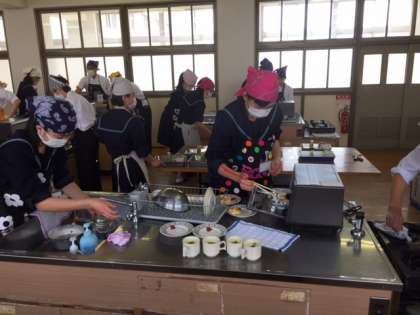 本日家庭科で一年生が調理実習を行いました。
