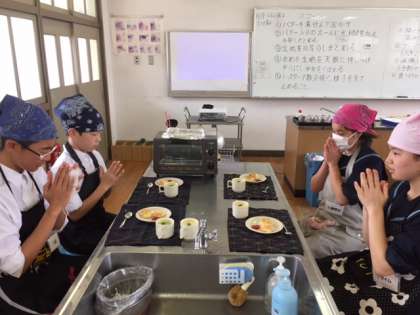 中学校生活で初めての調理実習ですが手順通り、手際よく協力して進めることができました。