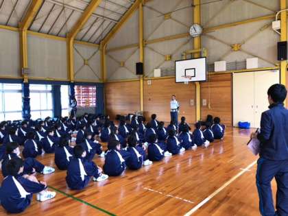 出発してからここまでを振り返り、様々なお話をしていただきました。ここへ来るまでに、見送りに来てくれた保護者のみなさん、他学年の先生、バスの運転手さん、青少年の家の方々など、たくさんの方に支えられていること、挨拶のこと、などなど……。ちょっと疲れた?