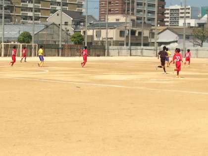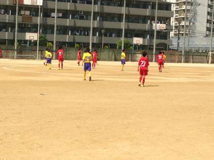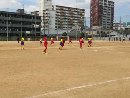 5月4日 横堤中-大領中 前半 1-0、後半に横堤中が5点加算し、6-1で横堤中が勝利しました。次は6日の10時に試合があります。