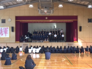 金曜日5.6時間目、1年生と3年生はそれぞれ、体育館と音楽室・教室に分かれて合唱コンクールの練習をしました。
