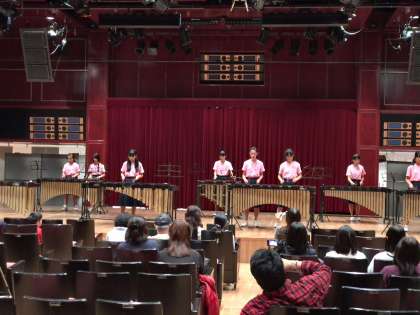 11月4日、鶴見緑地内噴水広場、花博記念ホールにて行われたECO縁日。ホールでは本校音楽部の生徒が演奏しました。この日のために毎朝練習を続けてきての本番。全8曲を力強く演奏してくれました。