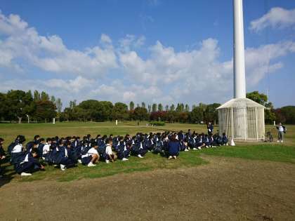 先程、鶴見緑地へ到着、オリエンテーションをスタートしました!