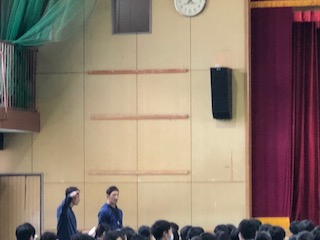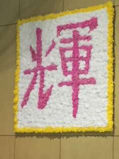 > 本校の卒業式に向けての風物詩です。講堂の舞台向かって左側に花文字を在校生が毎年作ってプレゼントしています。昨年は「輝く」でした。一年間掲示されたパネルが外され入れ替えを予定しています。今年の文字はなにになるのでしようか?仕上がりが楽しみです。