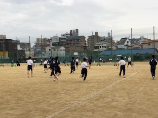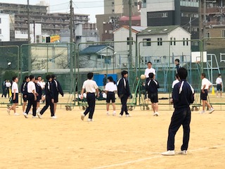 19日 1年生は、雨の天気予報にもかかわらず学年末の日までに予定が取れないので、球技大会を開催しました。運動場で男女とも、ポートボール大会を行いました。幸いなことに試合中雨は降らず思いっきりポートボールを楽しむことができました。学年最後の行事で、学級の親睦が図れて、仲間とのふれあいも深めることができました。
