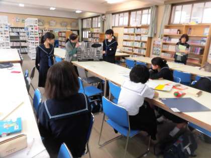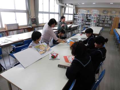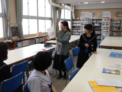 本日(2日)の放課後、図書館での文芸部の活動に鶴見図書館の館長さんに来ていただき、「読み聞かせ」の指導をしていただきました。文芸部では鶴見図書館の協力を得て、横堤小学校の2年生を対象に絵本の読み聞かせを行うことになっています。生徒たちは一人ひとり絵本を選びました。今回、素敵な大型絵本も持って来ていただき、レパートリーも広がりました♪。館長さんからは、読み聞かせを行う際のポイントや留意点について教えていただいたあと、絵本のページを丁寧にめくりながら読み聞かせの練習を行いました。生徒たちは、聞き手に絵をしっかりと見せながら、一言一言、ゆっくりと気持ちを込めて読んでいたのが印象的でした。物語の世界に引き込まれていき、ひと時の安らぎを感じました!
