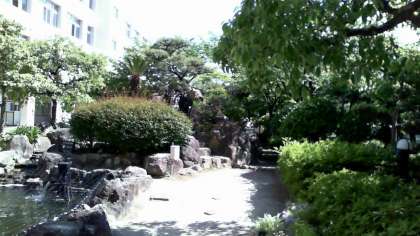 中庭の樹々の新緑も、ますます色鮮やかになってきました。池の鯉も元気に泳いでいます。ここ数日、雨や曇り空が続きましたが、今日はきれいな青空が広がりました。