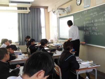 本日(12日)、横堤中学校では土曜授業の一環として1・2時間目に授業参観を行いました。多くの保護者の方々が参観される中、どの学級の生徒も授業に集中し、真剣な表情で課題に取り組んでいました。教室に備え付けられているICT機器(プロジェクタ、パソコン等)を効果的に活用した授業も様々な教科で展開されていました。
