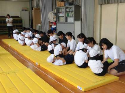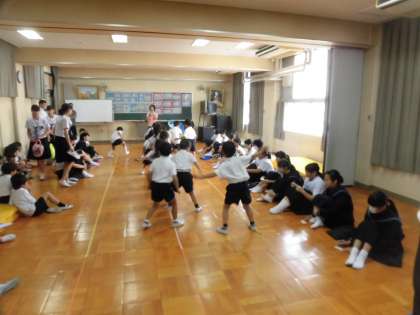 先日、横堤小学校より、小学生でスポーツテストを実施するにあたって、「計測のお手伝いを中学生にお願いしたい」というご依頼がありました。本日(16日)、中間テストを終えたばかりのバレー部が小学校に出かけ「計測」のお手伝いを行うことになりました。計測するのは、反復横跳びと腹筋の回数です。小学生一人ひとりに中学生がついて、正確に回数を数え、カードに記録していきます。1・2年生の小学生たちを笑顔で優しくリードしたり、励ましたりする中学生がとても頼もしく感じられました。小学生にとっても中学生にとっても、とてもよい交流の機会になったと思います♪