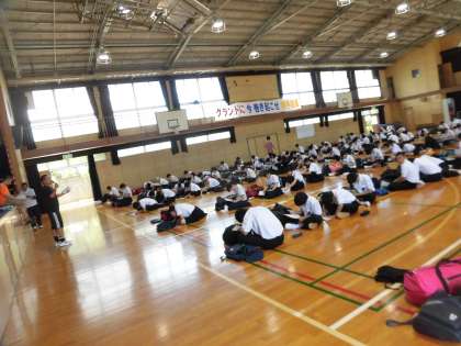 いよいよ明日(22日・火)から24日(木)まで3年生の修学旅行です。本日、3・4時間目に体育館で事前指導がありました。37期生の修学旅行のスローガンは「全員参加 全員協力 全員笑顔」です(^^♪。今まで修学旅行委員や学級代表をはじめ、多くの生徒たちによって準備が進められてきました。今日の事前指導では生徒たちは先生の説明をしっかり聞きながら、しおりを再確認していました。美しい新緑の信州で、様々な体験活動を行います。3年生は早めの給食を済ませたあと、下校し、各家庭で明日に備えての準備です。明日は午前7時、体育館に集合完了です。今夜はできるだけ早めに休んでくださいね。