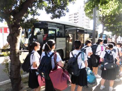 いよいよ本日(22日)より二泊三日で長野県に修学旅行に行ってきます。みんな集合時間には整列完了!代表生徒の司会のもとで出発式が行われました。37期生の修学旅行のスローガンは「全員参加 全員協力 全員笑顔」です。みんなしっかりとリーダーの言葉を聞いていました。37期生の期待と笑顔を乗せて、予定通り7時40分にバスが出発しました。お見送りに来ていただいた保護者の皆さま、どうもありがとうございました!