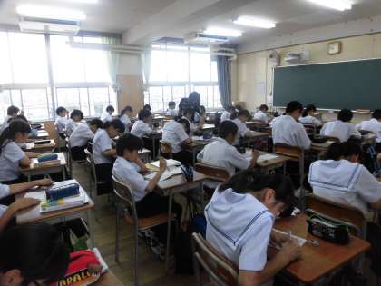 写真は本日(6日)、朝の学活で1年生が国語のドリルに取り組んでいる様子です。1時間目が始まるまでの短い時間ですが、ドリルを積み重ねることで基礎的な知識が定着していくともに、自己学習の習慣づくりにもつながっていくことと思います。さらに、朝、勉強に集中する時間を設定することで、1時間目からの授業への”ウォーミングアップ”にもなることでしょう。