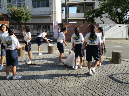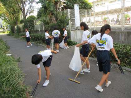 台風21号の強風によって、たくさんの落ち葉が学校に隣接する遊歩道にも散らばっていました。今日(5日)の放課後、バレー部員たちがほうきで落ち葉を集め、とってもきれいにしてくれました。いつもの通学路にもどりました。バレー部のみなさん。どうもありがとうございました!