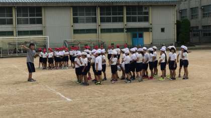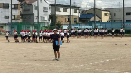 実は、小学校の体育館建て替え工事の関係で、中学校のグラウンドで小学生が運動会の練習をしています。困ったときはお互いさまです。