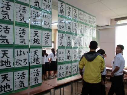 本日(19日)は午前中に文化発表会(展示発表)が行われ、午後(13時)から合唱コンクールが開催されます。午前中の展示発表では、教科、部活動(文化部)で制作した作品を展示しています。どの作品もとてもレベルが高く、感心します。一つ一つの作品に一人ひとりの思いや熱意が込められていていることを感じます。保護者の方も見学していただいています。