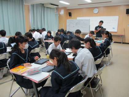 本日(24日)の6時間目、2年生と3年生の全学級で、第2回目の校内研究授業を実施しました。研究テーマは「主体的・対話的で深い学び」です。どの授業も各教科における「見方・考え方」を生かした内容構成となっており、生徒たちは、大変熱心に、生き生きと学習課題に取り組んでいました。授業ではタブレット端末やプロジェクタ、書画カメラ等のICT機器が数多く用いられていました。また様々な場面でグループ学習が取り入れられ、生徒どうしが考えを深め合っていました。研究授業のあとの研究協議では教員どうし、グループで成果や課題等について話し合われ、全体で共有しました。大変、実りの多い研究授業、研究協議となりました。