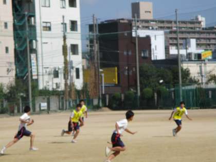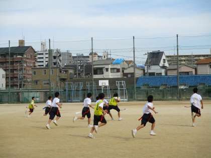 スポーツの秋。男子の体育の授業では「タグラグビー」を行っています。「タグ」と呼ばれる紐を、プレイヤーの腰の左右に2本巻きます。このタグを相手プレイヤーが取ることで、タックルの代わりとなり、安全面に配慮され、初心者でも楽しめる競技となっています。あとは基本的にラグビーと同じルールです。生徒たちは、いろんな方向にはねるラグビーボールを追いかけながら、運動場を駆け回っていました!