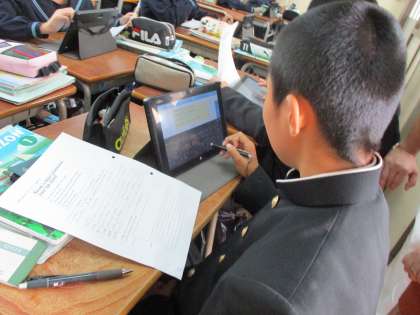 タブレットを使って学校紹介文を作成しましたー1年生・英語ー