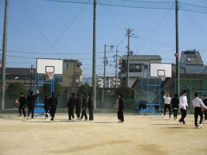 写真は本日(26日)の昼休みの運動場の様子です。多くの生徒たちは、昼休みの時間を有効に使って、バスケットボールやドッヂボール、サッカー、バレーボールなどで元気に遊んでいます(バスケットゴールは青色のペンキできれいに塗り直しました)。昼休みになると、運動場からは笑い声や歓声が聞こえてきます。