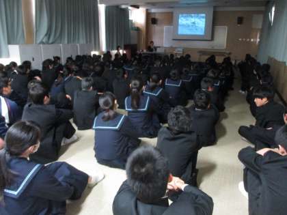 本日(8日)の5時間目、2年生では、学校歯科医の先生を講師としてお招きして「歯と口の健康教室」を開催しました。DVD「ブラッシングを科学する」を視聴したあと、正しい歯の磨き方を学びました。歯ブラシの持ち方や力の入れ方、動かし方、歯磨き剤の使用量など詳しく教えていただきました。正しい歯磨きの方法を学ぶことは、歯肉炎や歯周病、虫歯を防ぐ上でもとても大切です。学校歯科医の先生から一人一本の「デンタルクロス」もいただきました。お忙しいところ、本校の生徒のためにいろいろとご準備、ご指導いただき、ありがとうございました。