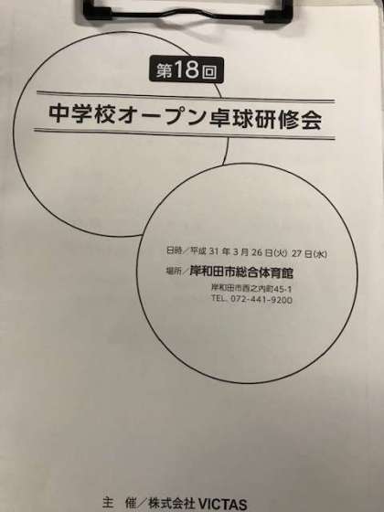3月26日(火)男女卓球部は岸和田市総合体育館で行われた中学校オープン卓球研修会に参加しました。