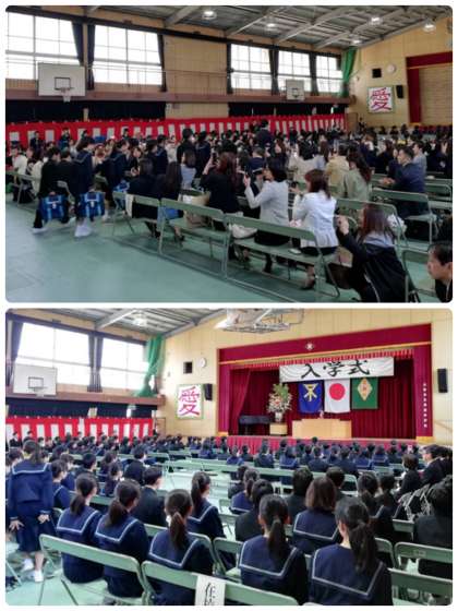 真新しい標準服に身を包み、大きな通学カバンを持った新入生たちの初々しい姿が印象的です。