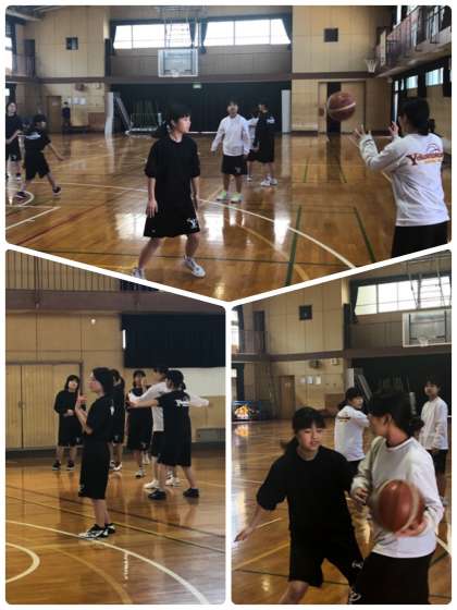 ディフェンスの位置取りをしっかり確認して、先輩から後輩に伝えています。