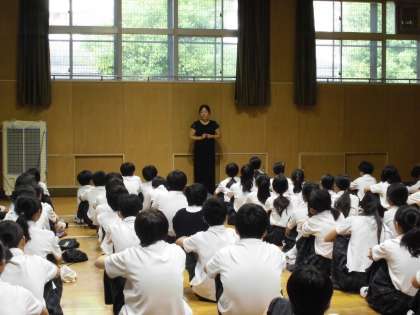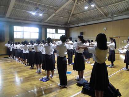 1年生の学年集会では、担当の先生から、中間テストを振り返り、ノミの習性に例えて自分で努力する範囲の天井を作ると、それ以上飛べなくなるというお話がありました。