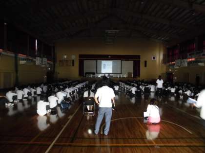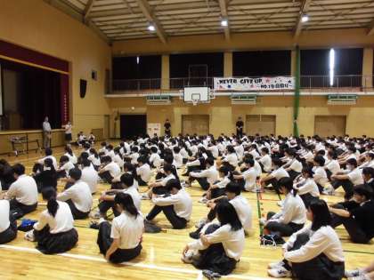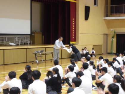 校長先生のお話のあと、卓球部の表彰(大阪府女子団体 第3位)がありました。