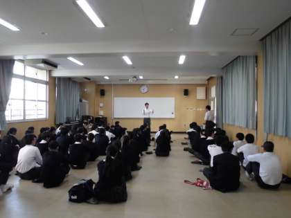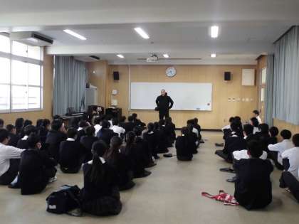 3年生の学年集会では、防寒着の着用ルールの確認と、「過去に戻れるなら」という話から今の自分の頑張りが未来の自分につながるというお話がありました。